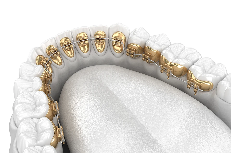 Bei der Lingualtechnik (lingual = zungenseitig) werden spezielle Lingualbrackets auf die Rückseite der Zähne geklebt, so dass Korrekturen von Zahnfehlstellungen möglich sind, ohne dass jemand die feste Zahnspange sieht.
