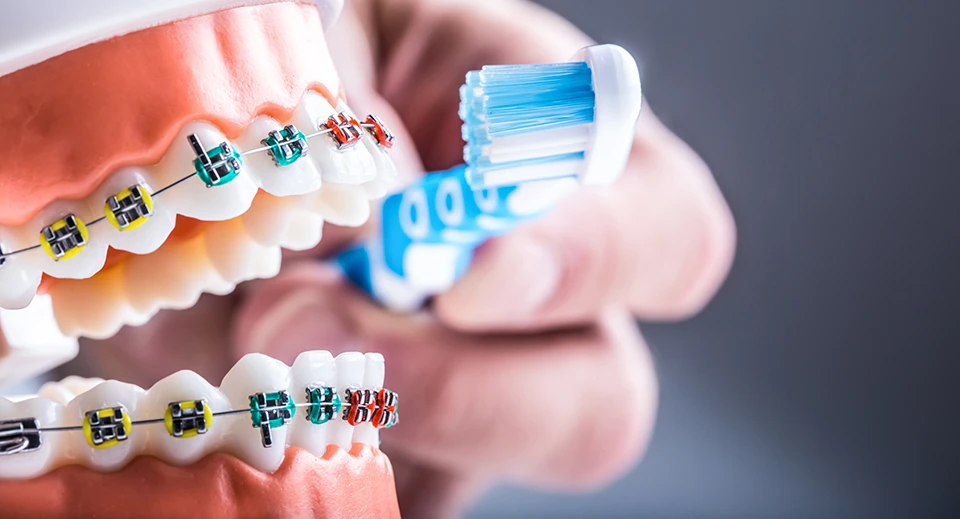 Festsitzende Zahnspangen erschweren die Reinigung der Zahnoberflächen.